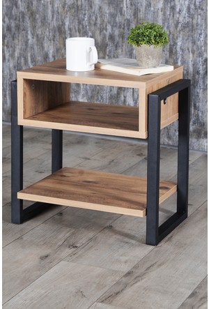 Mudesa modern komodin metal ahşap iki raflı komidin metal ayaklı raf kitaplık sehpa.
